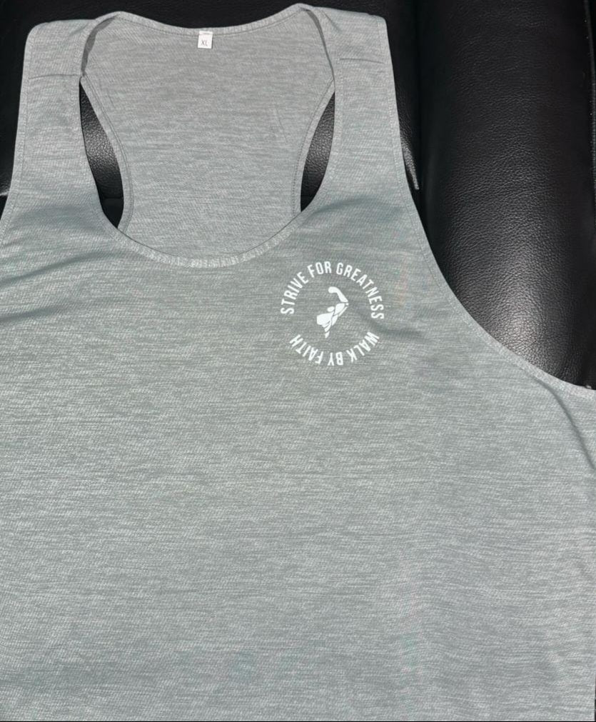 -The Front has the text " Lift by faith" "strive for greatness" mini logo.